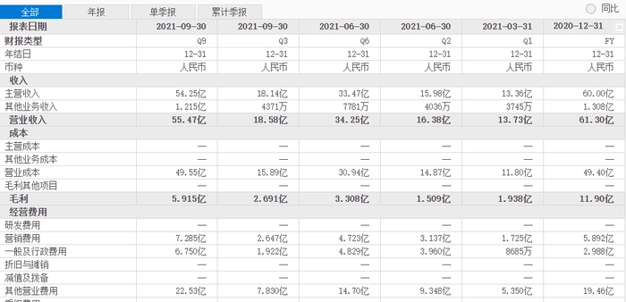 这份财报也并不好看,显示每日优鲜亏损严重。财报显示,2021年Q3,每日优鲜净亏损为9.74亿元。而2018-2020年每日优鲜全年净亏损分别为22.32亿元、29.09亿元和16.49亿元。在上市后的2021年Q3单季度亏损就超过2020年全年的一半。