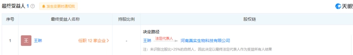 天眼查信息透露,真实生物注册资本8亿元,但实缴资本仅1000万元。真实生物法定代表人和最终受益人均为王琳,由香港企业“Genuine Biotech HK Limited”100%控股。