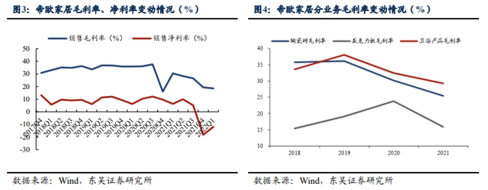 我们再来看一个样本。帝欧家居( 002798.SZ )从2013年到2021年均实现盈利,但是从2021年第四季度开始,净利润出现了亏损,毛利率接连下滑。帝欧家居2021年销售毛利率为26.07%,2022年第一季度滑落至18.59%,同比下滑11.92个百分点,这是因为,从2021下半年开始,上游原材料和煤炭、天然气等能源大宗商品快速上涨,生产所需的能源、陶土、色釉料、包装材料等都受到直接影响。