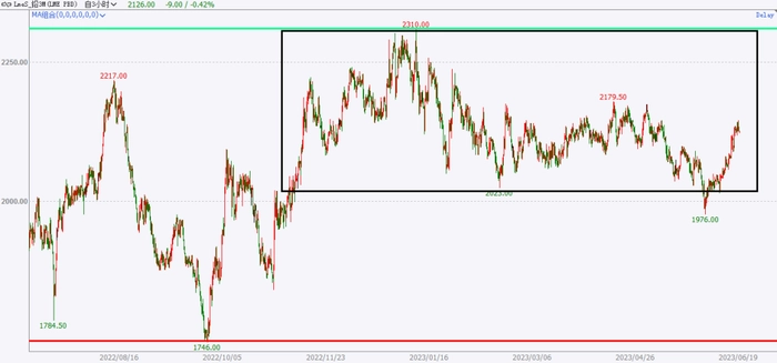 6月,沪铅价格连续37个月在14000-16500元/吨区间宽幅震荡,短期在中部15000-15500元/吨区间窄幅震荡;伦铅连续36个月在1740-2300美元/吨区间宽幅震荡,短期在中部偏上2000-2300美元/吨区间震荡。