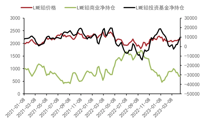 沪铅多头在5月先增仓后减仓带动价格先扬后抑,随后空头在6月上旬先增仓后减仓带动价格先下跌后反弹,6月中旬多头显著增仓4.2万手至12.4万手继续拉升价格。伦铅多空增仓博弈,空头在5月持续增仓带动价格一度短暂跌破2000美元/吨震荡区间底部,6月多头持续增仓拉升价格重回5月初位置。6月15日,沪铅收盘价15380元/吨,较上月同期15200元/吨上涨1.18%;伦铅收盘价2128美元/吨,较上月同期2076美元/吨上涨2.5%。