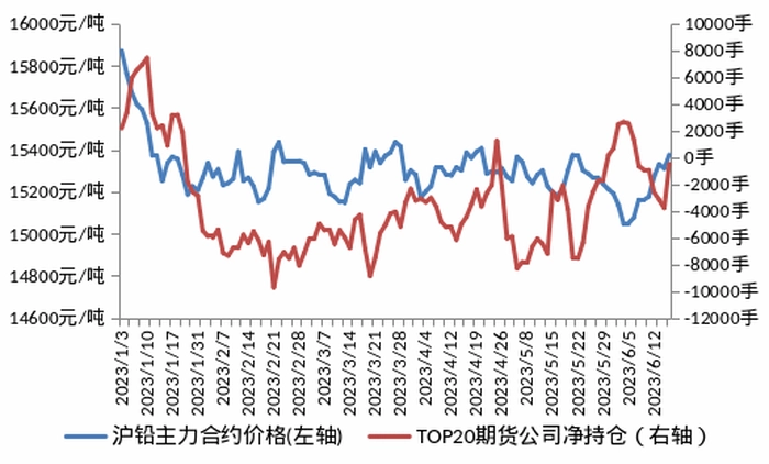 6月15日,沪铅持仓量TOP20期货公司净持空头头寸由5月初8248手收缩至430手。6月2日,伦铅商业机构净持空头头寸14610手,较上月同期空头敞口收窄16496手,投资基金转为净持空头头寸4279手,较上月同期多头敞口收窄13944手。