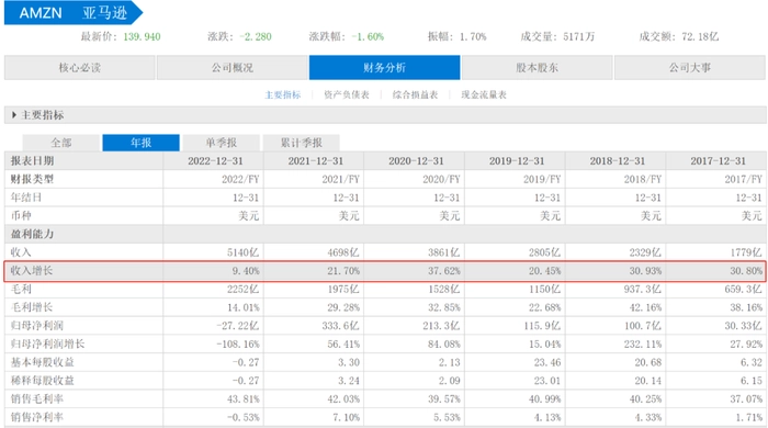 亚马逊是不可战胜的?显然不是,以往亚马逊在美国在线零售市场的占有率约为 42%,一度超过50%,但在2022年下滑到了37%,说明自身的份额被来自Shein、Temu和TikTok这样竞争对手不断蚕食。因为于商家而言,亚马逊虽是首选项,但已然不是必须选项。9.4%的营收增幅看似不错,却是近年来最低。