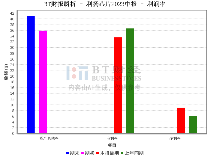 根据利扬芯片2023年中报,公司资产总计期末余额为18.93亿元,相比期初的16.94亿元有所增长。负债合计期末余额为7.75亿元,较期初的6.07亿元有所上升。商誉期末余额为3.25千万元,与期初的3.25千万元持平。净资产期末余额为11.17亿元,较期初的10.87亿元略有增加。资产负债率期末为40.98%,较期初的35.84%有所上升。