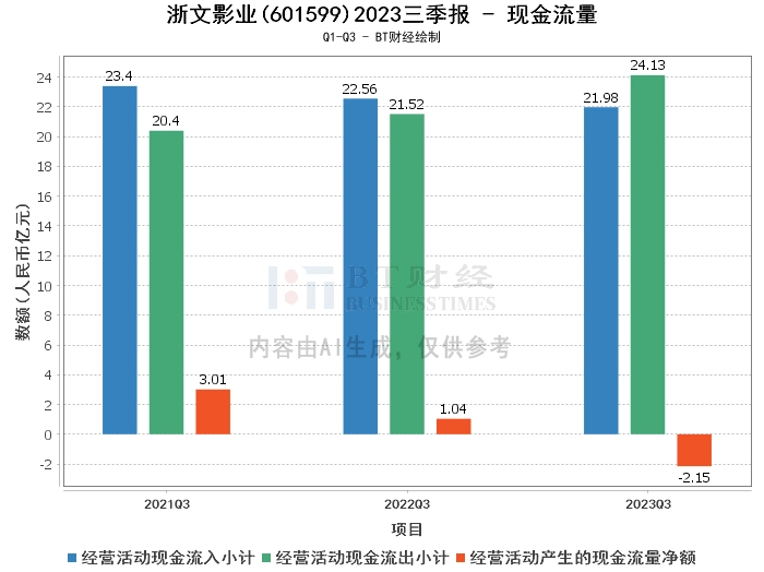 总的来看,浙文影业2023年三季度的经营状况整体稳定,资产负债率微增,但净利润增长明显,显示出公司的盈利能力有所提升。然而,现金流量净额转为负值,这可能表明公司在经营活动中的现金流出增加,需要投资者关注。