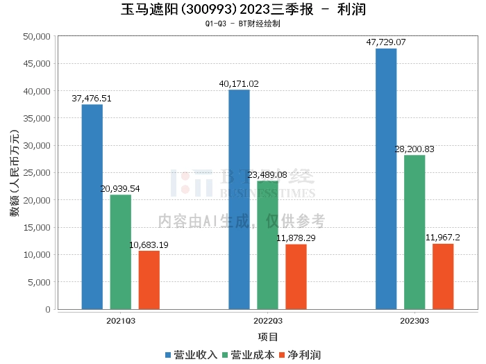 【BT财报瞬析】玉马遮阳2023三季报:总资产增长6.9%,净利润微增,现金流量净额增长34.92%