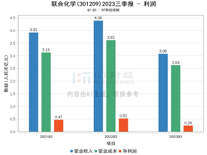 【BT财报瞬析】联合化学2023三季报:营收和净利润双降,现金流保持稳定