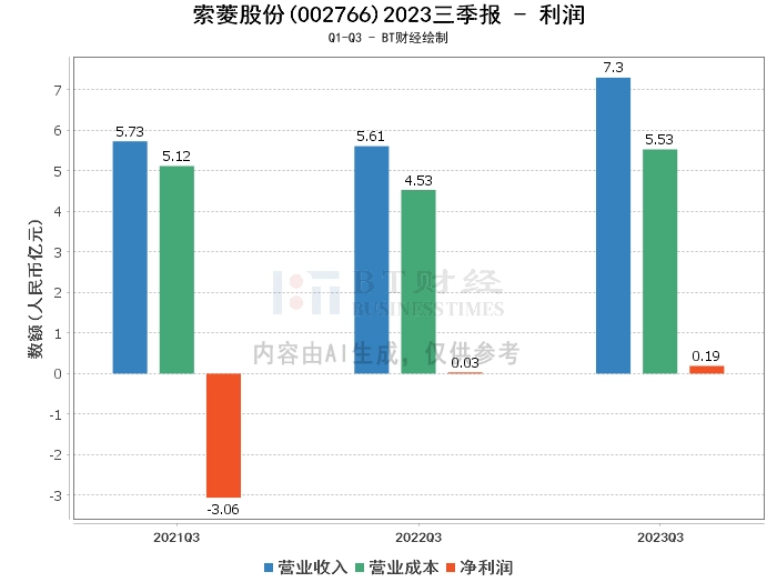在利润方面,索菱股份2023年三季度的营业收入为7.3亿元,相比上年同期的5.61亿元有显著增长。营业利润为2218.37万元,相比上年同期的397.26万元增长显著。营业成本为5.53亿元,相比上年同期的4.53亿元有所增加。净利润为1889.61万元,相比上年同期的252.25万元增长显著。