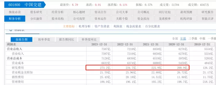 作为中字头的国家队,一般来说都有技术沉淀,在研发投入上并不显眼,但中国交建是个特例。