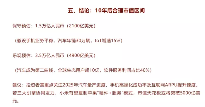 据一些媒体用DeepSeek预测,小米的市值甚至未来10年将达到最高3.5万亿,并给出了详实的依据和充分的理由。