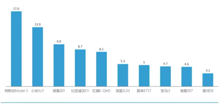 (2024年20万元以上纯电轿车销售前十。数据来源:公开数据)