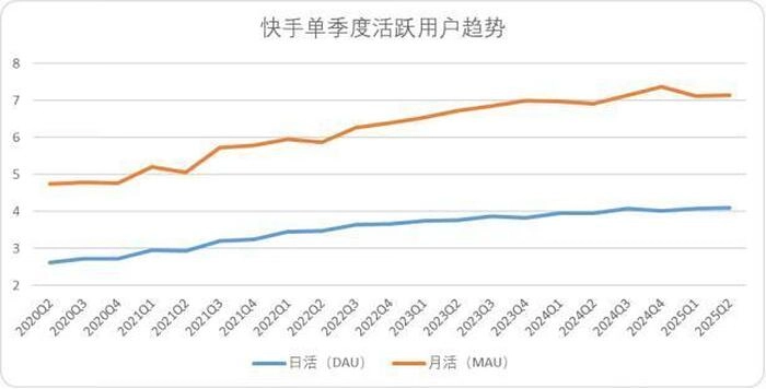 抖音日活用户超过7亿,而截至2025年上半年,快手日活用户为4.09亿,日活用户上抖音领先幅度较大,依托“巨量引擎”精准投放,单一用户广告价值约为快手的2倍。好在快手的日活时长以128分钟略高于抖音的120分钟。