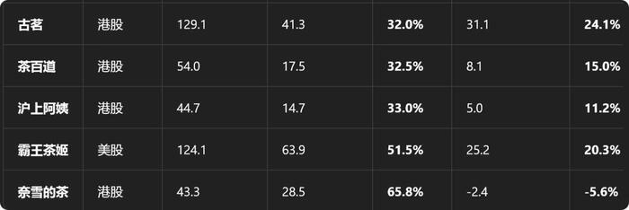 从蜜雪冰城财报也可以得到印证。2025年的毛利率只有31.14%,相比2024年的32.46%下滑了1.32个百分点。从茶饮上市公司来看,蜜雪冰城31.14%的毛利率属于偏低水平。茶饮第一股奈雪的茶尽管2025年净亏损2.391亿元,但其毛利率高达66.05%。茶百道的毛利率为32.51%,古茗毛利率是32%,沪上阿姨为33%,霸王茶姬毛利率为51.5%,在已知的上市茶饮品牌中,蜜雪冰城的毛利率垫底,或和其选择在黄金地段开店增加了店铺租金支出有很大关系。但蜜雪冰城17.66%的净利率却仅次于古茗和霸王茶姬。