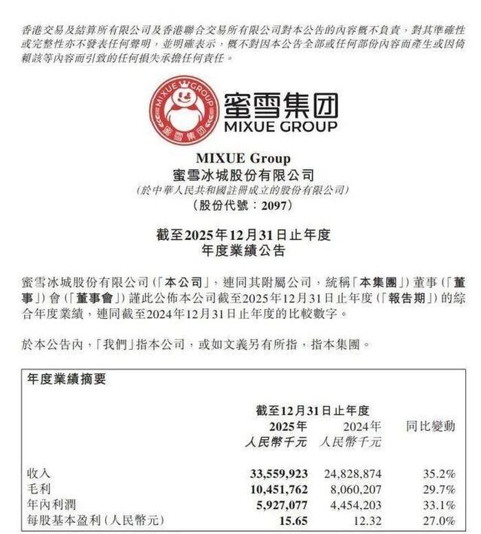 财报显示,蜜雪冰城2025年营收335.6亿元,同比增长35.2%;归母净利润58.8亿元,同比增长32.7%,整体上看,蜜雪冰城核心经营指标均超出市场预期。要算到平均门店,其盈利能力却让很多投资者心生疑虑。