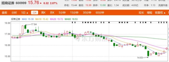 3月28日,招商证券发布2025年年报。年报显示,招商证券2025年全年营收249.72亿元,同比增长19.53%;归母净利润123.50亿元,同比增长18.91%。财报发布后招商证券股价一改此前一路下跌的颓势开始上扬,截至4月1日收盘,招商证券收盘价为15.76元,当日再涨2.07%,市值1371亿元。但相比其28.63元的股价高点,整体跌幅依然有45%,市值蒸发1120亿元。