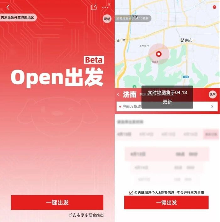 2026年4月,京东App灰度测试"Open出发服务",内测城市为济南,市场随即传言京东要做网约车。