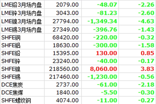 【大宗·期货】2月10日大宗金属交易市场复盘