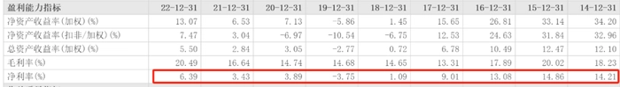 净利率不足高峰时一半