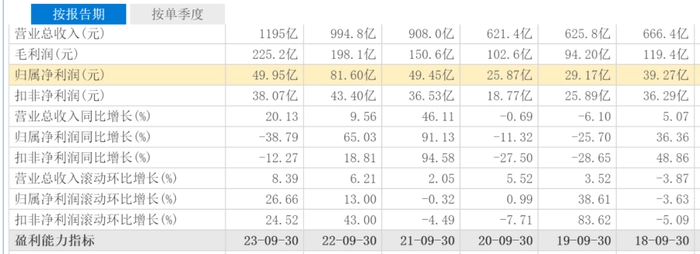 除了1月23日披露的业绩快报之外,2023年前三季度,长城汽车同样是增收不增利。2023年三季报显示,长城汽车营收1195亿元,同比增长20.13%。归母净利润49.95亿元,同比下滑了38.79%。营收大增,净利润大幅下滑,2023年前三季度的增收不增利是2023年全年的缩影。
