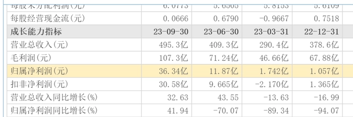 具体到2023年的每个季度,三季度495.3亿元的营收同比增长32.63%,净利润也实现了41.94%的增长,但奈何前两个季度净利润遭遇大下滑,其中第一季度净利润下滑了89.34%,第二季度净利润继续同比下滑了70.07%,前三季度整体净利润下滑了近四成,直接导致全年净利润下滑15.22%。而长城汽车在2023年第二季度其实已经终结了连续数个季度的营收下滑,单季度营收409.3亿元,同比增长43.55%。但在近9个季度,净利润下滑较为普遍,净利润提升的只有3个季度。