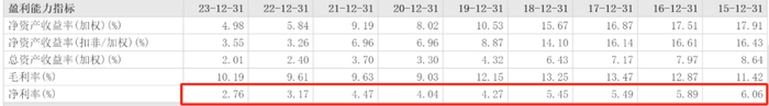 值得一提的是,2023年上汽集团的净利率创下历史新低。2023年上汽集团的毛利率为10.19%,相比2022年的9.61%略有提升,提升了0.58个百分点。但对应的净利率却并未因毛利率的提升而提升,反而降至历史最低值。2023年上汽集团的净利率为2.76%,相比上一年的3.17%下滑了0.41个百分点。这样的净利率相比2015年至2018年下滑了一半左右。