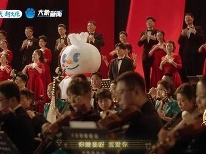 这是一场跨界指挥和互动领唱的表演,雪王并非单纯人偶跳舞,而是以指挥家姿态带领专业交响乐团和民族乐团,演绎改编版的蜜雪冰城主题曲,过程中穿插可爱舞蹈动作、与乐团成员及现场观众挥手互动,气氛活泼。蜜雪冰城尝试将品牌与高雅艺术结合,打破消费者对其“低端”消费的认知,此举也获得了一致好评。