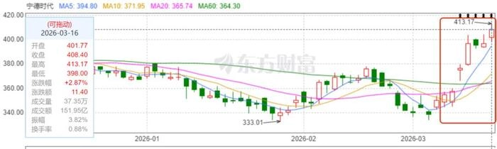 西南证券认为“宁德时代出货高增长,增长模式从‘产品’到‘服务’演进”,研报指出“宁德时代通过车电分离与换电模式来提升客户终端体验,与中石化合作,在乘用车便捷补能和商用车干线物流两大应用场景建设补能网络。与多家下游车企联合推出换电车型,截至2025年底,累计建成1325座换电站,其中巧克力换电突破1000座,骐骥换电突破300座,逐步从产品输出模式演化为产品+服务一体化模式,未来增长动力十足。”研报预计2026-2028年宁德时代EPS分别为19.92元、24.10元、28.98元,对应PE分别为20倍、16倍、14倍。研报认为宁德时代海外产能稳健释放,新型产品持续落地,产能建设进度放缓,提高分红比例领先行业进入兑现期,维持“买入”评级。
